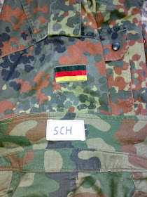 2. Pozbądź się wszelkich naszywek z kombinezonu, bluzy czy spodni. Na poniższym zdjęciu jest to flaga z bluzy niemieckiej i biała naszywka pod kołnierzem polskiej bluzy. Najlepiej usunąć je za pomocą żyletki czy skalpela. Usuń również wszelakie rzepy. Podczas otwierania robią zbyt dużo hałasu.